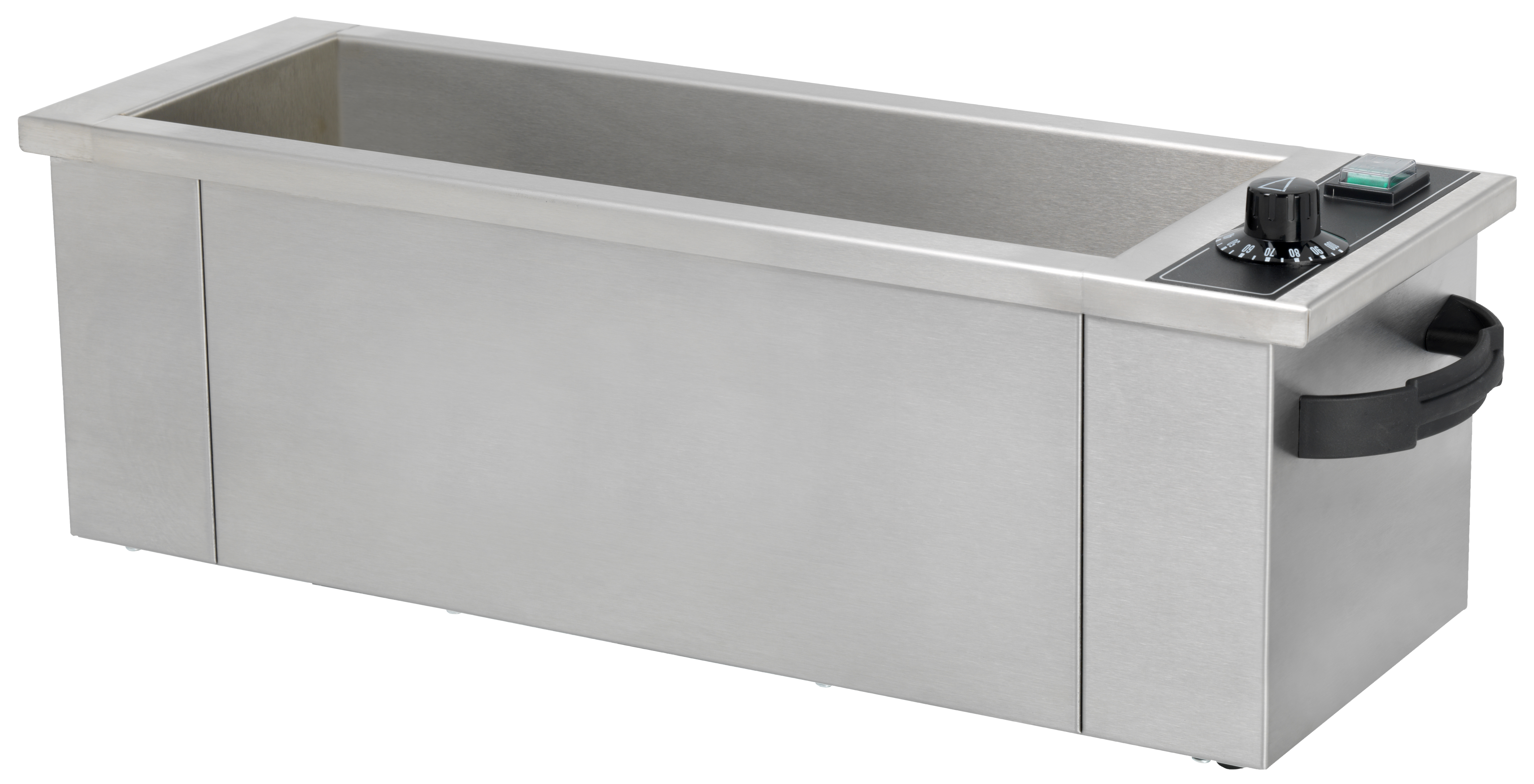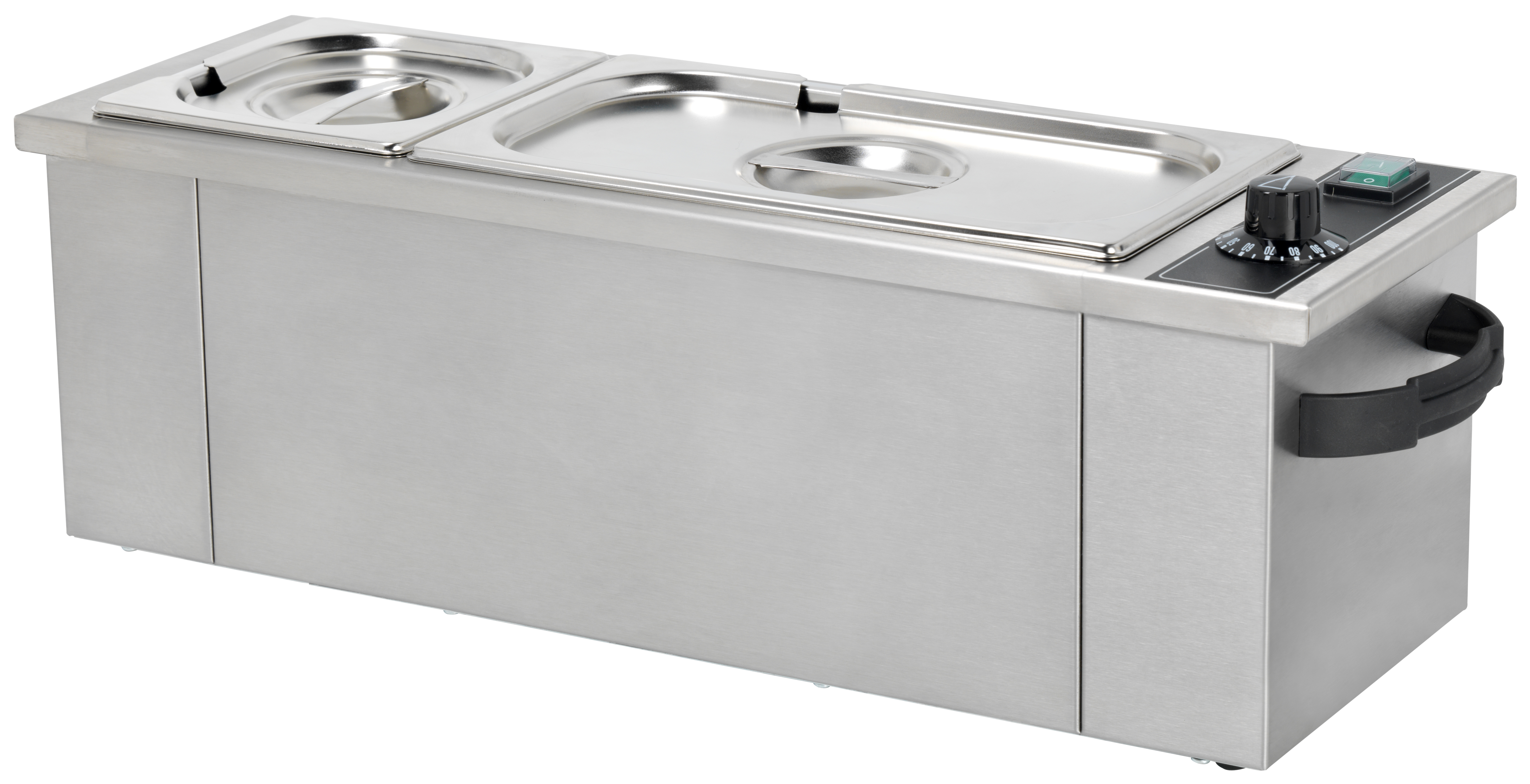 perfekt geeignet für warme Soßen am Crêpesstand (Schokosoße, Vanillesoße, Rote Grütze etc.) - Wasserbad für eine gleichmäßige Wärmeverteilung verhindert das Anbrennen der Speisen - ideale Höhe für die Aufstellung hinter dem Crêpeseisen - Gehäuse Edelstahl - Thermostat 50°C bis 100°C - geeignet für 1/6 oder 1/3 GN-Behälter mit 150 mm Tiefe - GN-Behälter nicht im Lieferumfang enthalten