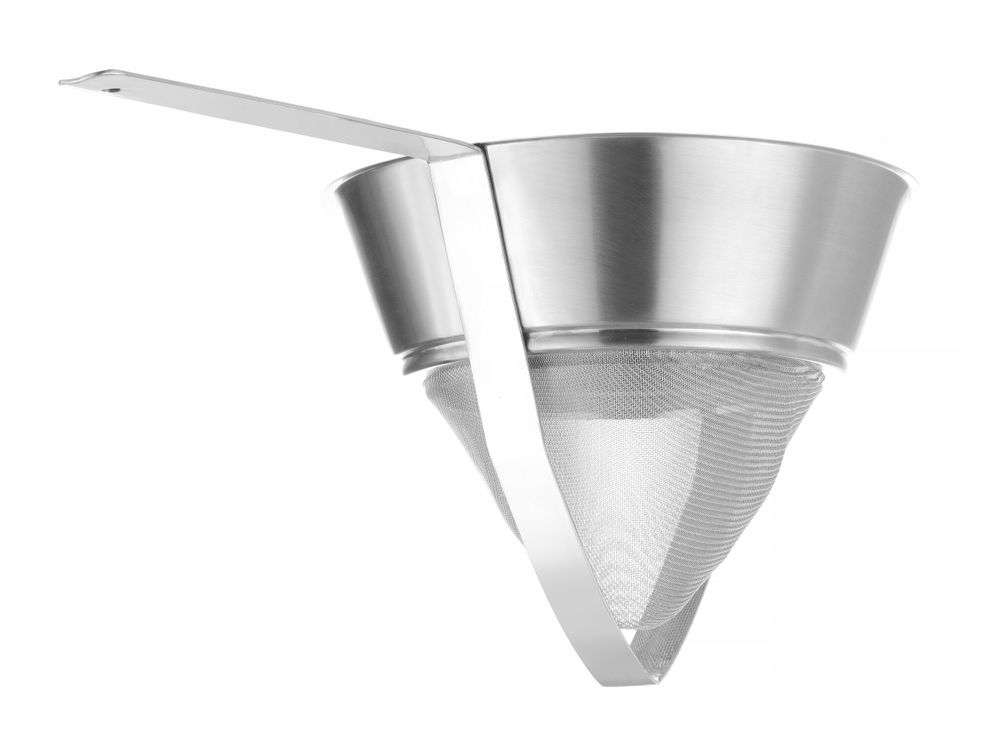 Vollständig aus satiniertem Edelstahl AISI 201 gefertigt. Extra dickes, verstärktes Sieb. Griff mit Aufhängeloch, verstärkt. Ausgestattet mit einem zusätzlichen Stützgriff. Gewölbter Rand. Spülmaschinenfest.Das konische Sieb mit Drahtgeflecht, verstärkt von HENDI hält Flüssigkeiten frei von Klumpen und siebt fein gemahlene Produkte perfekt. Dank seiner Form passt er sauber und effizient in jede Schüssel oder jeden Topf.Verstärkung für lange Lebensdauer und HaltbarkeitKonische 'Trichter'-Form für schmale und hohe GefäßeSeidige Textur für flüssige Lebensmittel garantiertPräzises Sieben von Mehl, Puderzucker und anderen frei fließenden Produkten