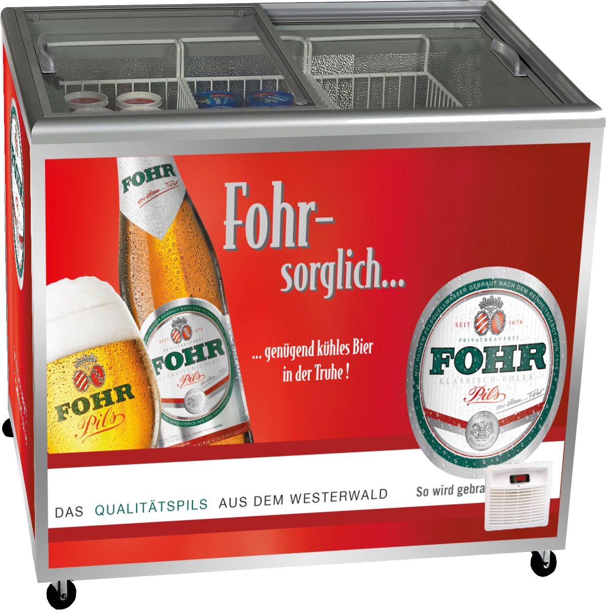 - Als Impuls-Kühltruhe geeignet für den Verkauf von Getränken. Platz für 5 Getränkekisten 400 x 300 mm