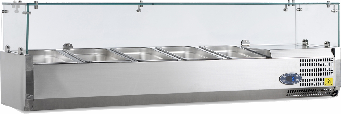 - Aufsätze geeignet für 1/2, 1/4 -GN Behälter bis 150 mm Höhe. Fassungsvermögen 5 Behälter GN 1/4