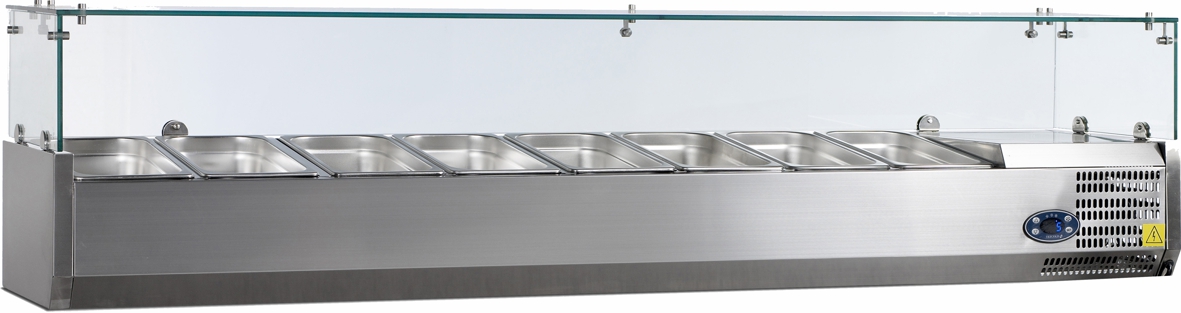 - Fassungsvermögen 8 Behälter GN 1/3 (nicht im Lieferumfang enthalten)