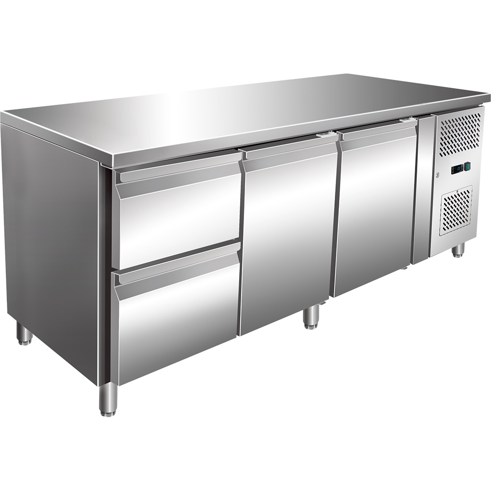 Produktinformationen "Kühltisch GN1/1 mit 2 Türen & 2 Schubladen/Umluftkühlung, 465 Liter"