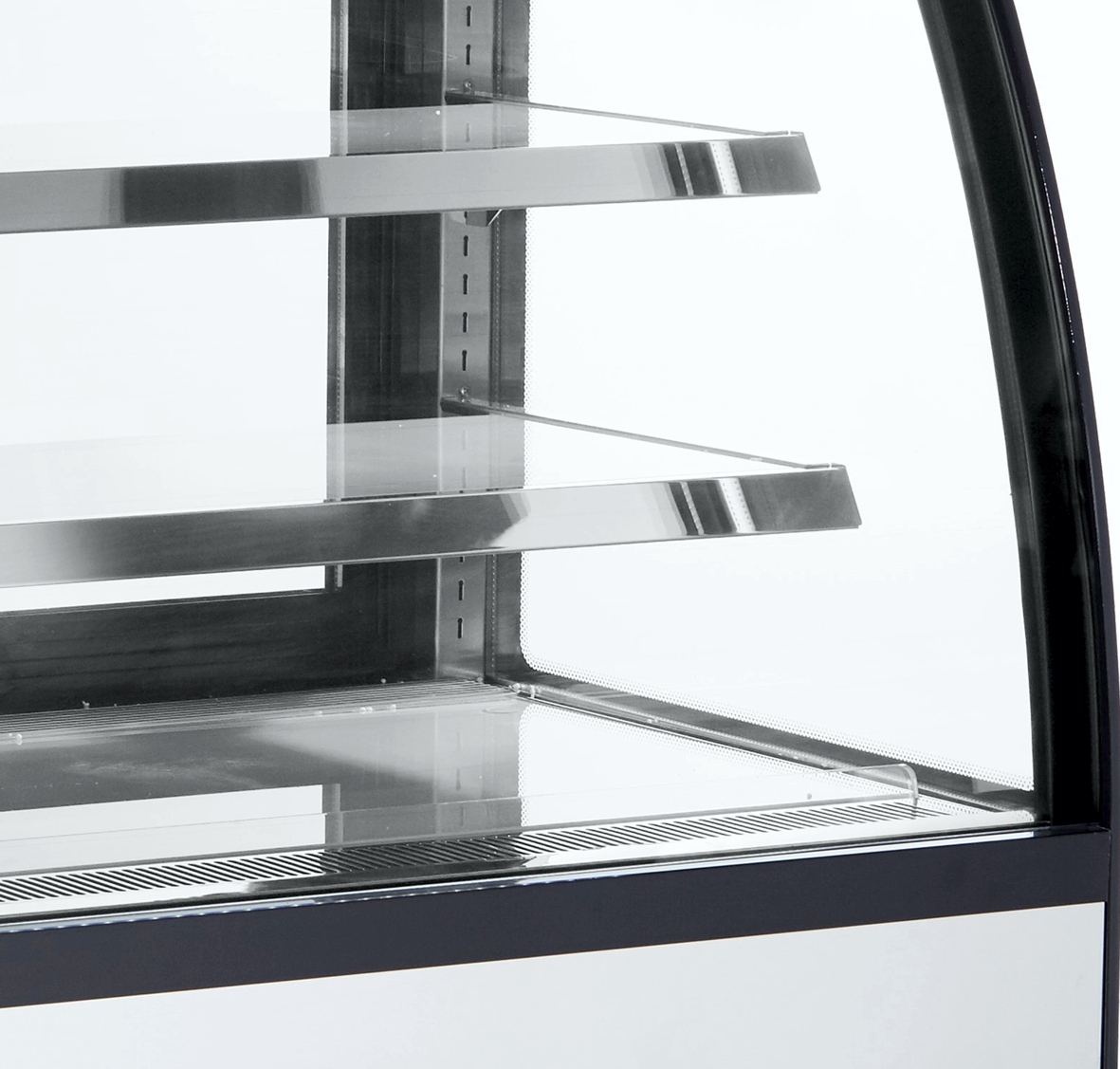 - Optimale Warenpräsentation, Gehäuse in Edelstahl, 4-seitige Verglasung, LED