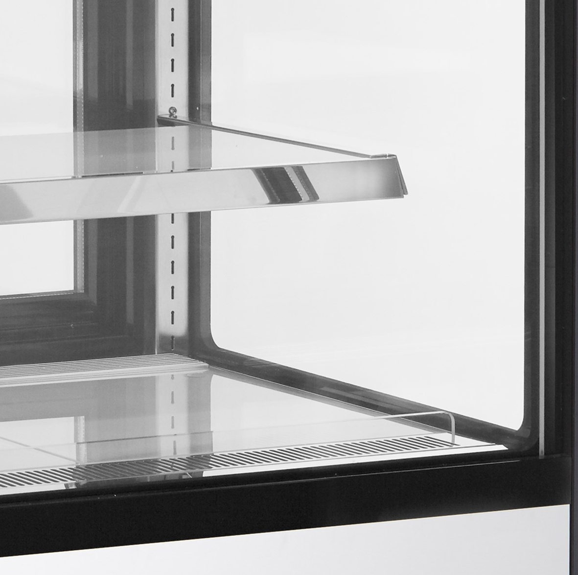 - Optimale Warenpräsentation, Gehäuse in Edelstahl, 4-seitige Verglasung, LED