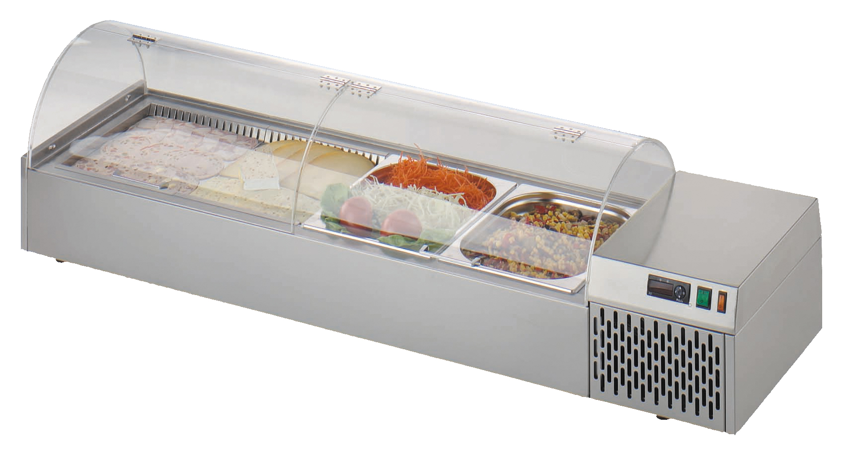 für 1x GN 1/1 - 100 mm tief - Gehäuse Edelstahl - Deckel Acrylglas - Abtauautomatik - statische Kühlung im Wannenbereich bis +4°C - FCKW-frei - Lieferung ohne GN-Behälter