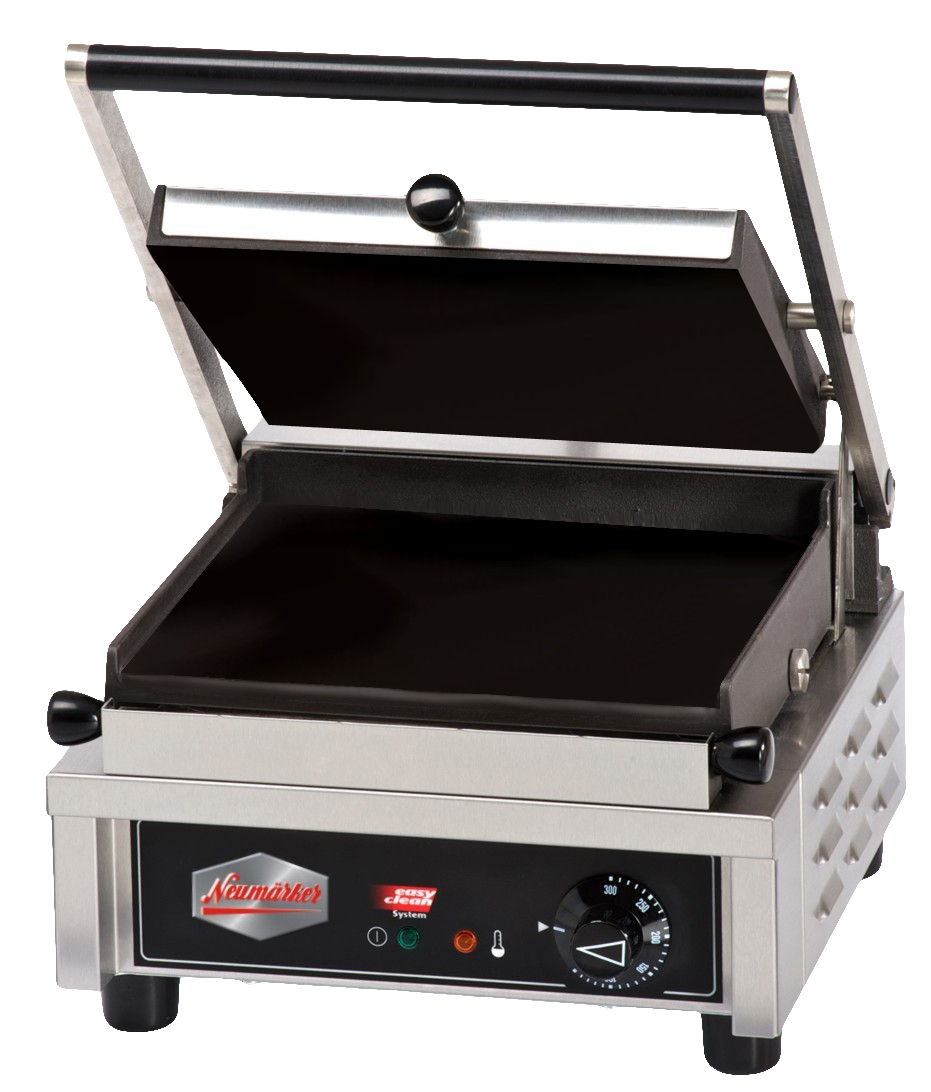 Grillfläche 260 x 230 mm - entnehmbare Grillplatten oben und unten geriffelt - untere Platte glatt oder geriffelt austauschbar (zusätzliche Wechselplatten nicht enthalten) - Platten aus emailliertem Grauguss - Easy-Clean-System für die Reinigung der Platten im Geschirrspüler - patentiertes Heizkörper-Pack für gleichmäßige Hitze und Energiespareffekt - Thermostat bis +300°C - Ein-/Ausschalter - Kontrollleuchte - Fettwanne