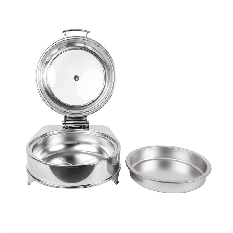 Attraktive Speisenpräsentationsmethode - ideal für Buffets. Topqualität aus Edelstahl mit Glasabschnitten im Deckel, damit die Speisen auch mit einem Deckel sichtbar sind. Sicherer als herkömmliche Chafing-Dishes, da das Gerät ohne offene Flamme oder teure Brennpasten betrieben wird. Hydraulischer Deckel mit Öffnungs- und Schließsystem bietet eine verbesserte Sicherheit und einfachere Nutzung. Feuchter Hitzebetrieb. Geliefert mit Behälter, Ersatzbehälter separat erhältlich., Maße: 24(H) x 42,5(B) x 49(T)cm, Material: Edelstahl und Glas, Steckerfertig: Ja, Gewicht: 10kg, Sanftes Schließsystem, Nasswärmebetrieb, Lieferumfang beinhaltet Speisebehälter, Maße des Behälters: 6,5(H) x 38,5(Ø)cm,
