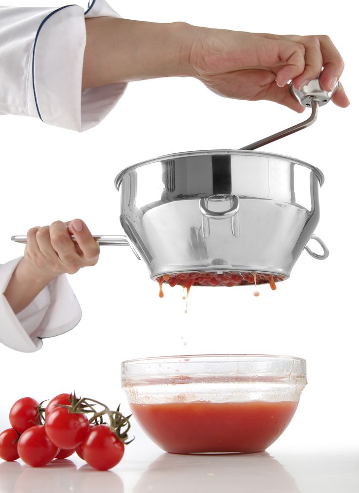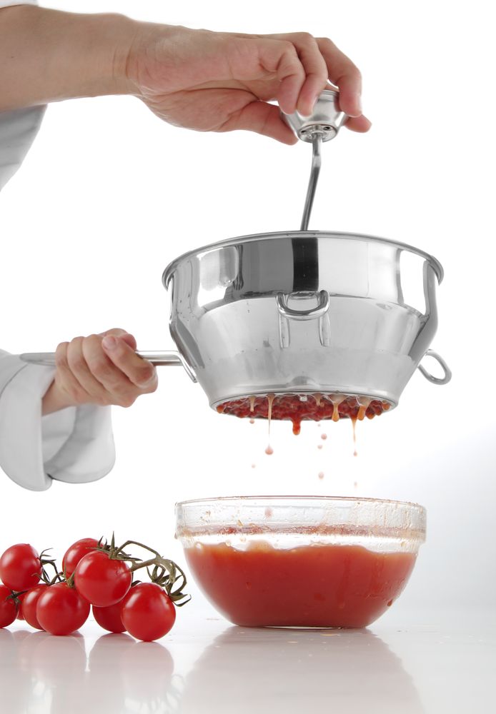 Optimal für das Zubereiten von Cremesuppen und Soßen. Mit 2 Einsätzen (Ø 140mm), grob und fein.