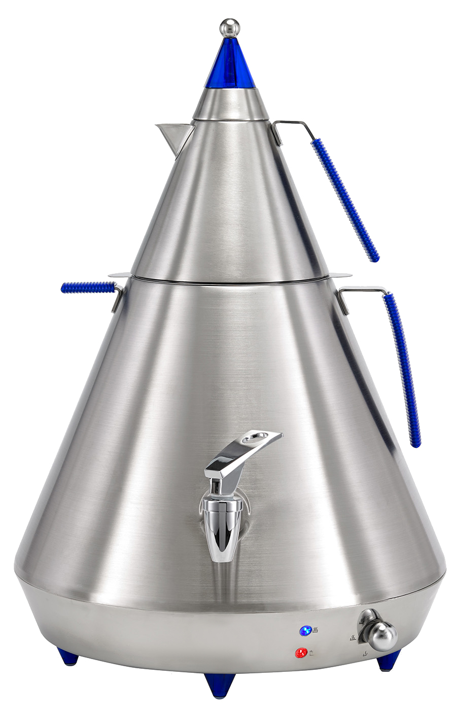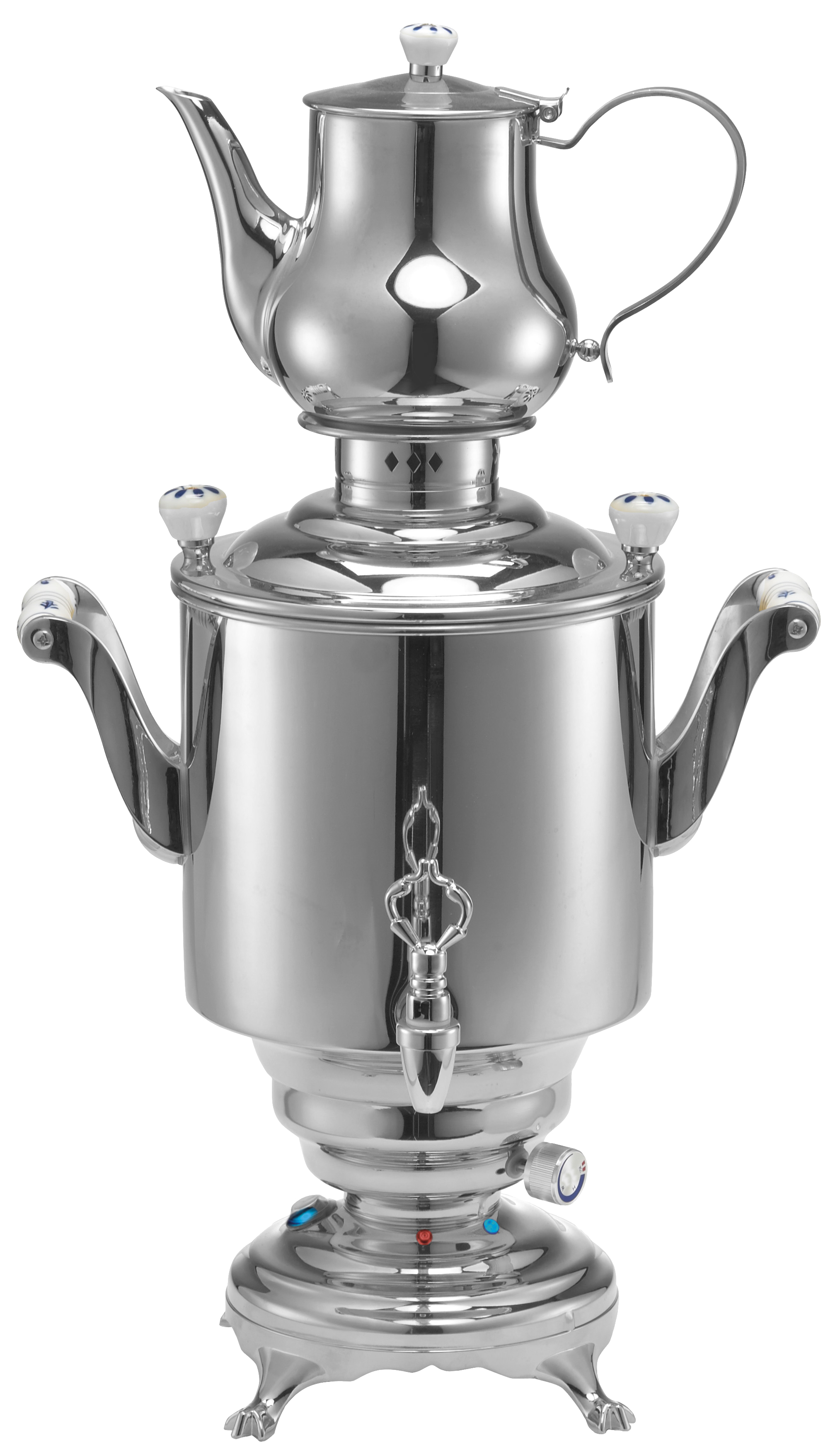 hochwertiger Edelstahl - großer Wasserbehälter mit Ablasshahn und abnehmbares Kännchen für Tee-Konzentrat - 1 Heizspirale für energiesparende Warmhaltefunktion (0,7 kW) - 1 zusätzliche Heizspirale zum schnellen Aufheizen - automatisches Umschalten auf Warmhaltefunktion beim Erreichen des Siedepunktes - stufenlos regulierbares und energiesparendes Thermostat - Überhitzungsschutz - Ablaßhahn mit Kalkfilter - permanentes Ziehen des Tees bei optimaler Temperatur - Stärke des Tees kann von Tasse zu Tasse individuell bestimmt werden - inkl. Teesieb - Wasserbehälter 15 Liter - Teekanne 2 Liter