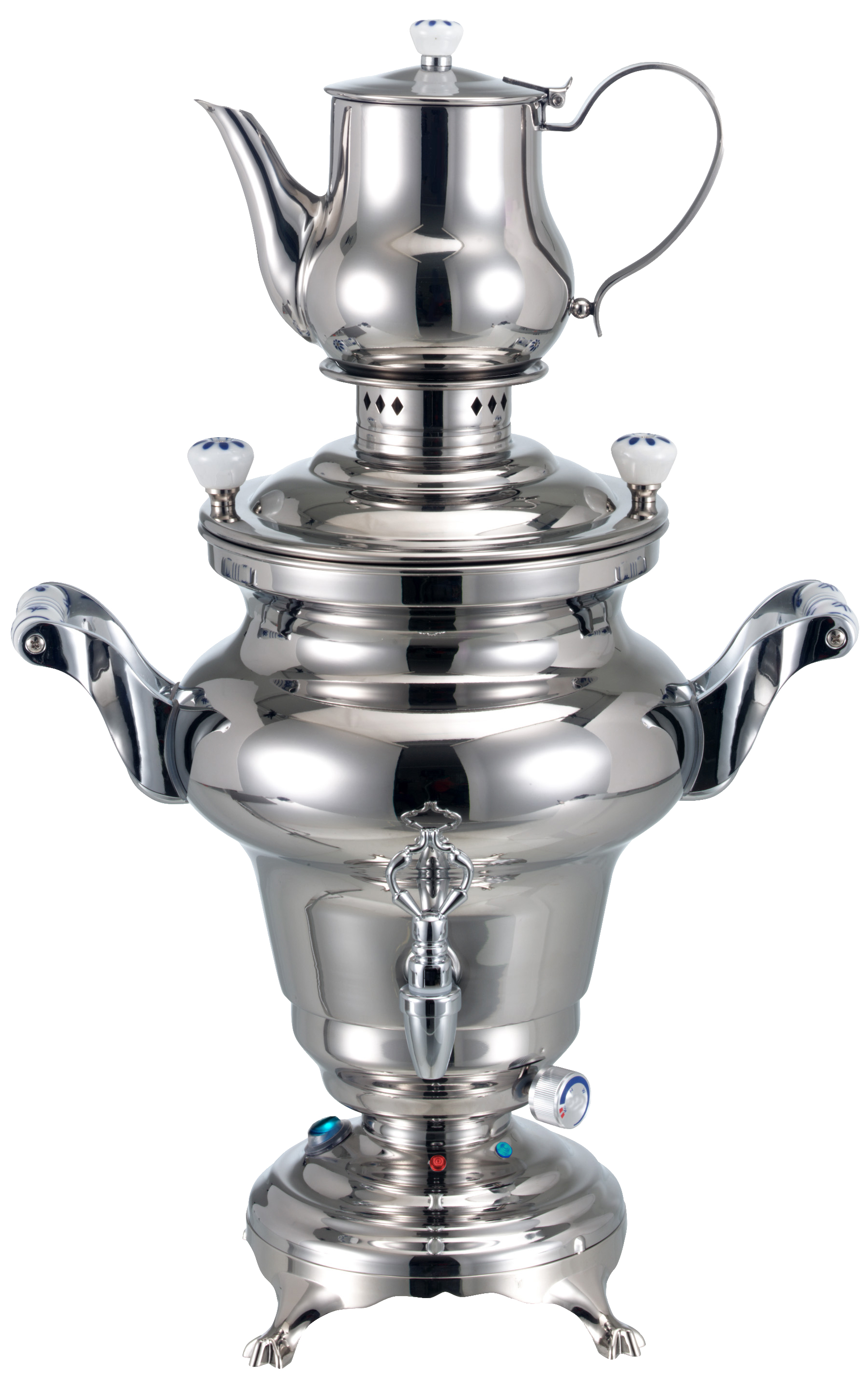 hochwertiger Edelstahl - großer Wasserbehälter mit Ablasshahn und abnehmbares Kännchen für Tee-Konzentrat - 1 Heizspirale für energiesparende Warmhaltefunktion (0,7 kW) - 1 zusätzliche Heizspirale zum schnellen Aufheizen - automatisches Umschalten auf Warmhaltefunktion beim Erreichen des Siedepunktes - stufenlos regulierbares und energiesparendes Thermostat - Überhitzungsschutz - Ablaßhahn mit Kalkfilter - permanentes Ziehen des Tees bei optimaler Temperatur - Stärke des Tees kann von Tasse zu Tasse individuell bestimmt werden - inkl. Teesieb - Wasserbehälter 15 Liter - Teekanne 2 Liter