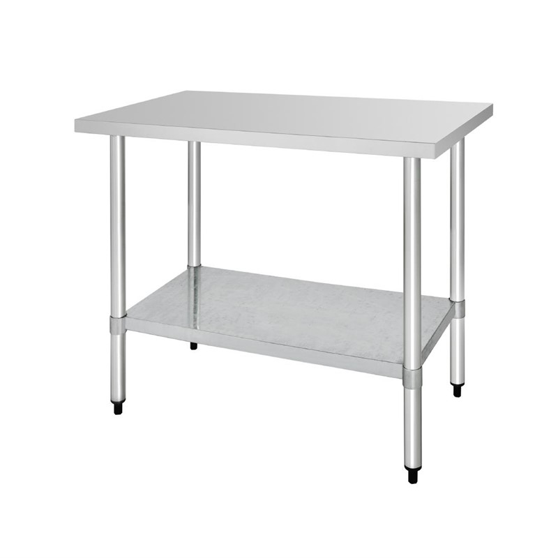 Praktisch, zuverlässig und hochwertig. Diese hochwertigen Tische bieten eine hervorragende Grundlage für jede Küche. Höhenverstellbare untere Ablage und Beine aus galvanisiertem Stahl. Ohne Aufkantung, Tischbeine aus verzinktem Stahl, Höhenverstellbarer Zwischenboden aus verzinktem Stahl, Flach verpackt für eine einfache Montage, Maximalbelastung: 400kg, Oberfläche 0 ,72m², Inklusive 4 Füße, Materialdicke: 1 ,2mm - 18 Gauge, Tisch, Regal und Befestigungen einbegriffen, Abmessungen:90(H) x 120(B) x 60(T)cm, Material:Edelstahl 430,