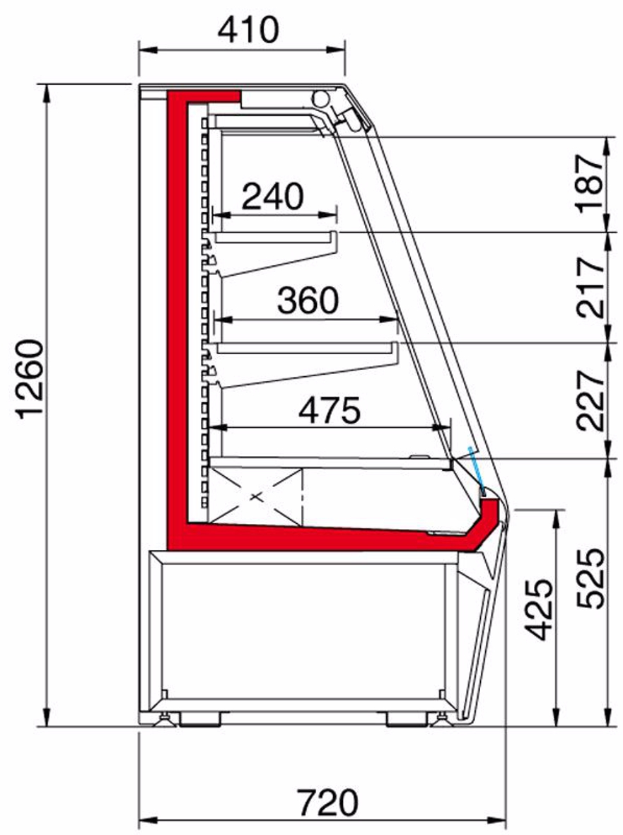 - Eine Version Temperaturklasse 3M1 für verpackte Fleisch- und Geflügelprodukte und Hackfleisch mit elektrischer Abtauung und Frontverglasung ist lieferbar gegen Mehrpreis (mit elektrischer Abtauung)